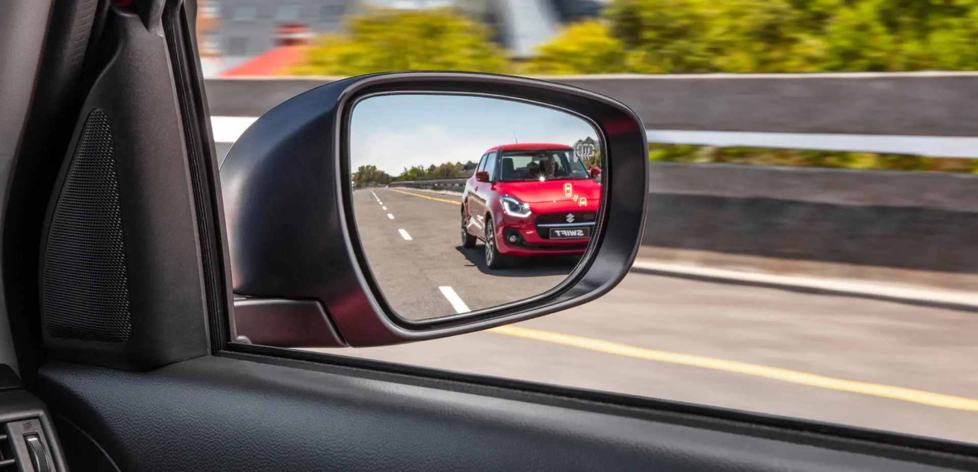 Lane changing at speeds over 15km/h is made safer thanks to radar sensors on the sides of the Swift that detect and warn you of vehicles in or approaching your blind spot.